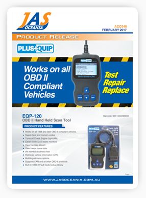 JAS Oceania is now stocking throughout its Australia wide automotive parts distribution network, the latest release of OBD II hand held scan tools by PlusQuip.