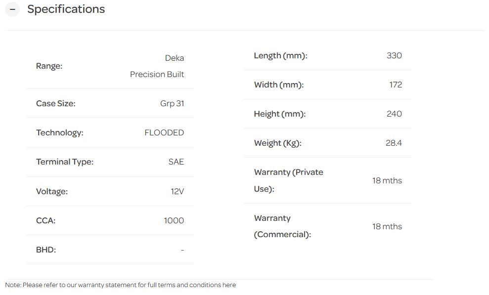 12V 1000CCA 185RC DEKA HD FLD PREC BUILT GRP 31 SAE 3 DISCONTINUED USE VARTA H31A