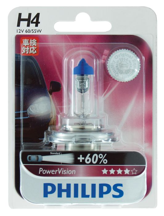 Halogen Globe H4 12V 60/55W P43T-38 PowerVision 3700K +60% More Light Blister Pack