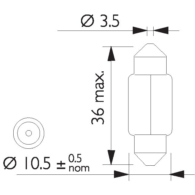 PKT 10 FESTOON 12V 10W 35mm