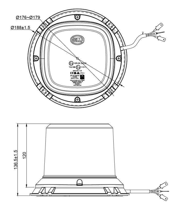 K-LED QUADRA Beacon Amber 10-30V Direct Mount Double Flash & Rotating 188x136mm