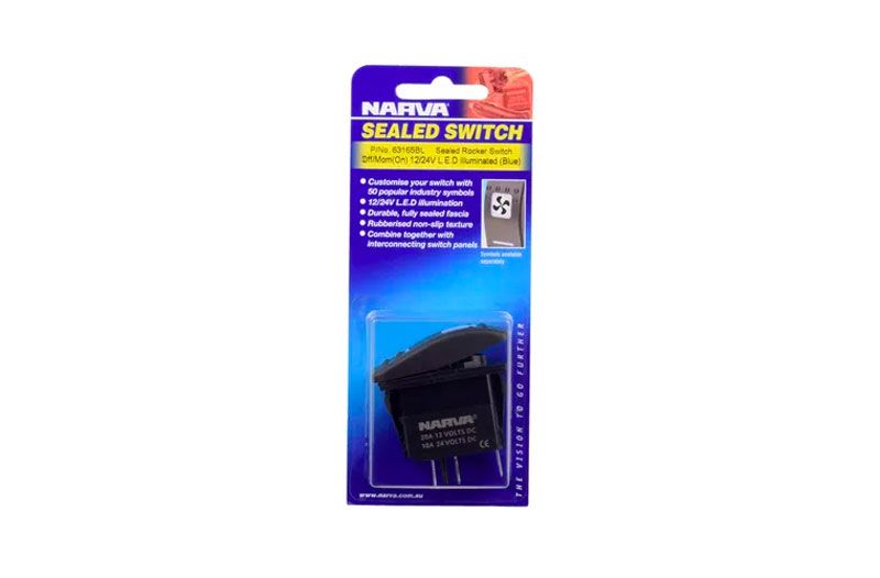 Switch Rocker Off/On(Mom) Sealed Blue LED SPST 12/24V Blister (1)