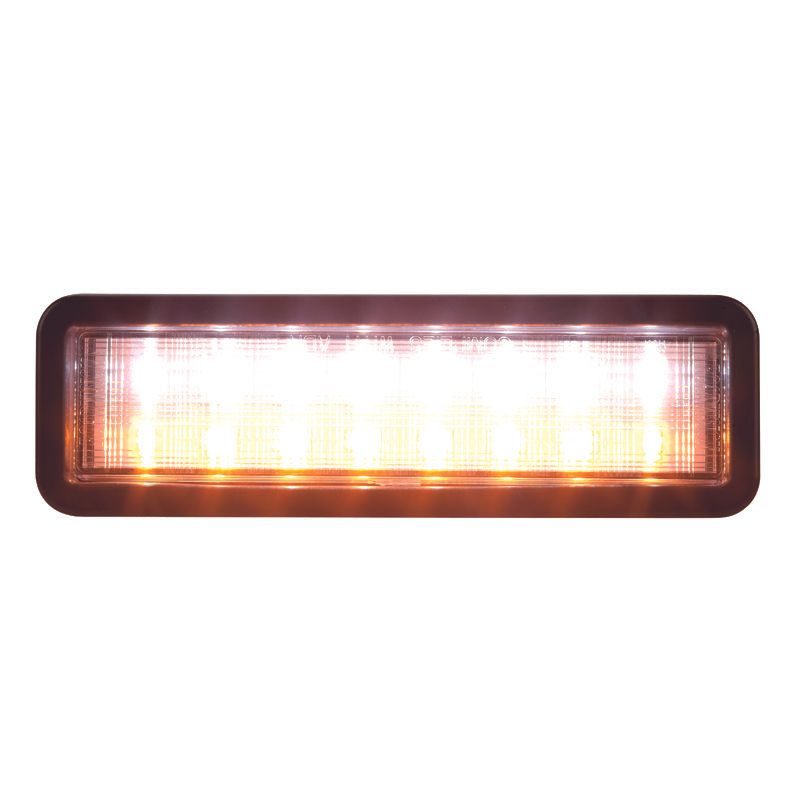 LED Front DRL/Ind/Park 10-30V Amber/White Rect 159 x 49mm Clear Lens Grommet Mount
