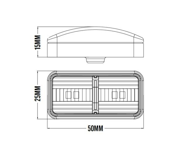 LED Clearance Light Red 10-30V 50x25x15m Red Lens Self Adhesive Mount 0.5m Lead
