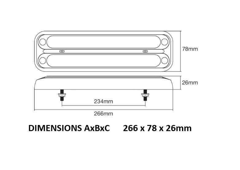 LED Rear Combination Lamp 10-30V Stop/Tail/Ind Blacked Out Lens 266x78mm