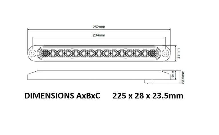 LED Sequential Indicator Lamp 10-30V Blacked Out Lens Surface Mount 252x28mm