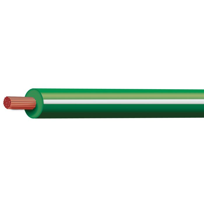 GRN/WHT 3MM TRACE SINGLE CORE 100M 10 AMP RATING 90DEG 14 STRANDS @ 0.32MM