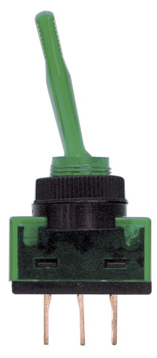 SWITCH TOGGLE 20AMP @ 12V 2 POSITION OFF, ON SPST GREEN ILLUMINATION 3 BLADE TERMINALS