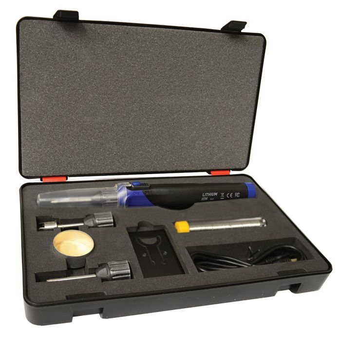 30W SOLDERING IRON KIT RECHARGEABLE Li-Ion BATTERY CHISEL,CONE,H/SHRINK TIPS
