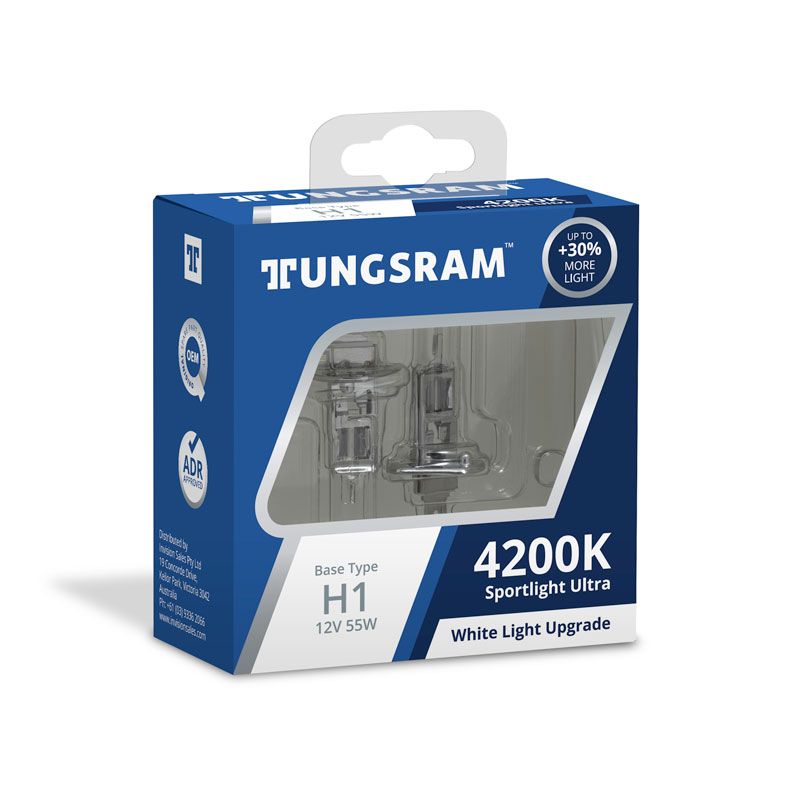 Halogen Globes H1 Sportlight Ultra +30% 4200K 12V 55W P14.5S Twin Pack