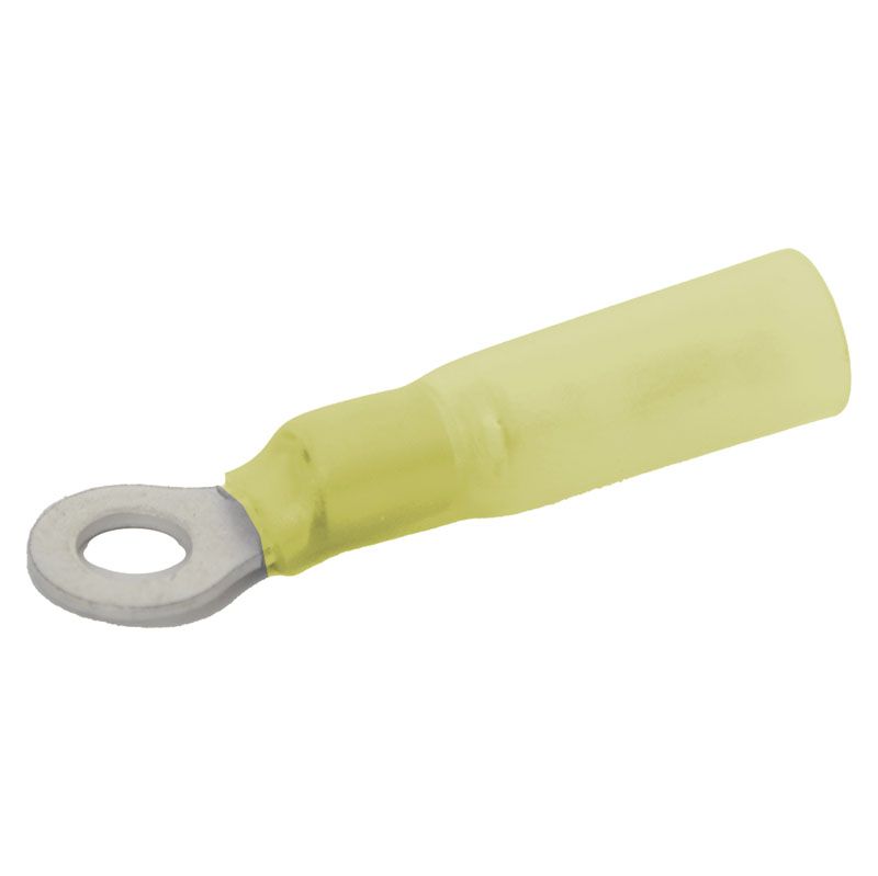 Heat Shrinkable Ring Terminal Yellow 6.3mm Eyelet 50 Pack