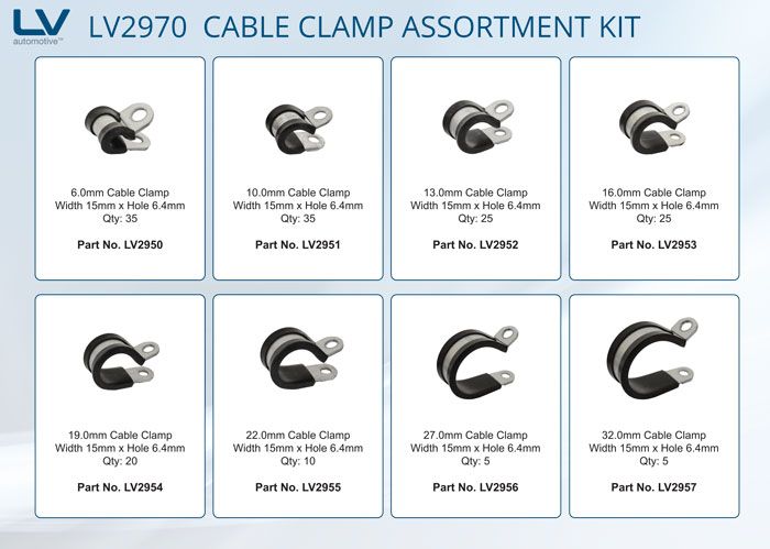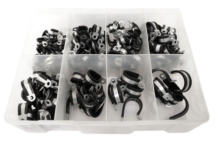 Cable Clamp Assortment 160Pcs Width 15mm Hole Size 6.4mm EPDM Rubber Mild Steel