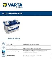 12V 760CCA(EN) VARTA EFB BLUE DYNAMIC DIN66H SAE 0 278MM X 175MM X 190MM