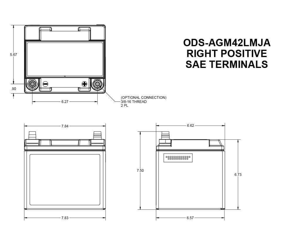 ODS-AGM42LMJA 12V 540CCA 78RC ODYSSEY AGM 12V40 M6 OR SAE O 200MM x 169MM x 193MM