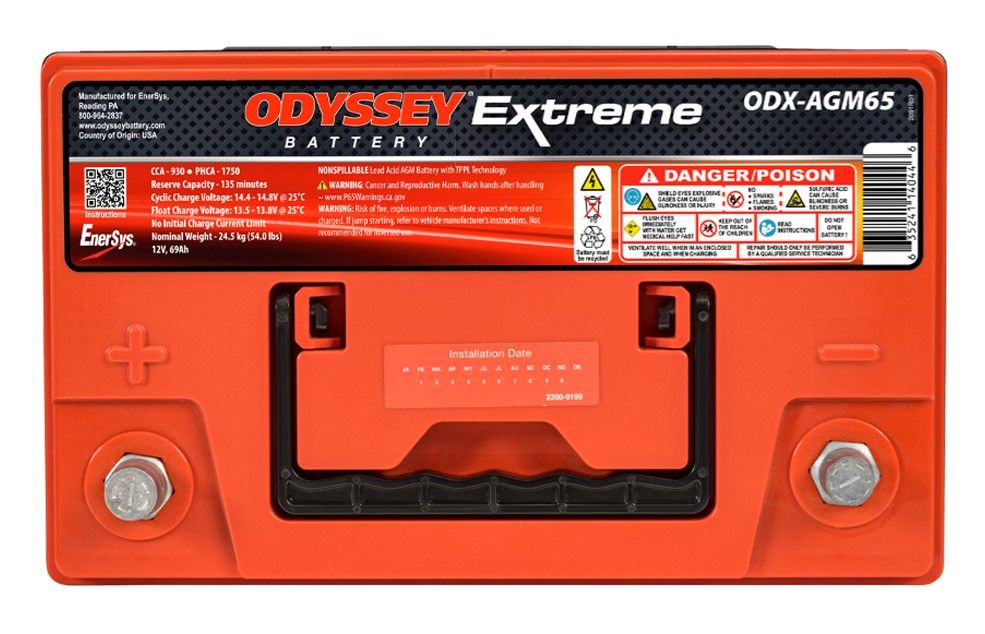 ODX-AGM65 12V 950CCA 145RC ODYSSEY AGM GRP 65 SAE 1 301MM x 183MM x 191MM