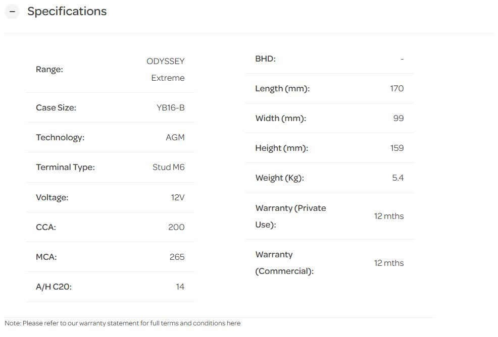 ODS-AGM12 12V 200CCA 21RC DISCONTINUED USE ODS-AGM14 170MM x 99MM x 159MM