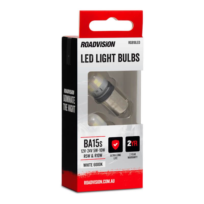 LED Bayonet BA15S 12V-24V 5W-10W R5W & R10W 6000K White 2PK