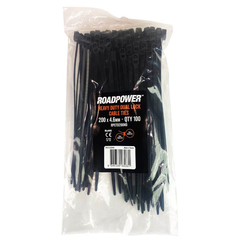 Roadpower Heavy Duty Black Nylon Dual Cable Tie 200mm x 4.6mm X 100